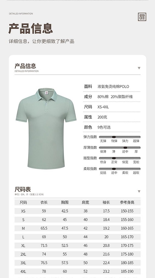 面料:80%棉20%聚酯纖維